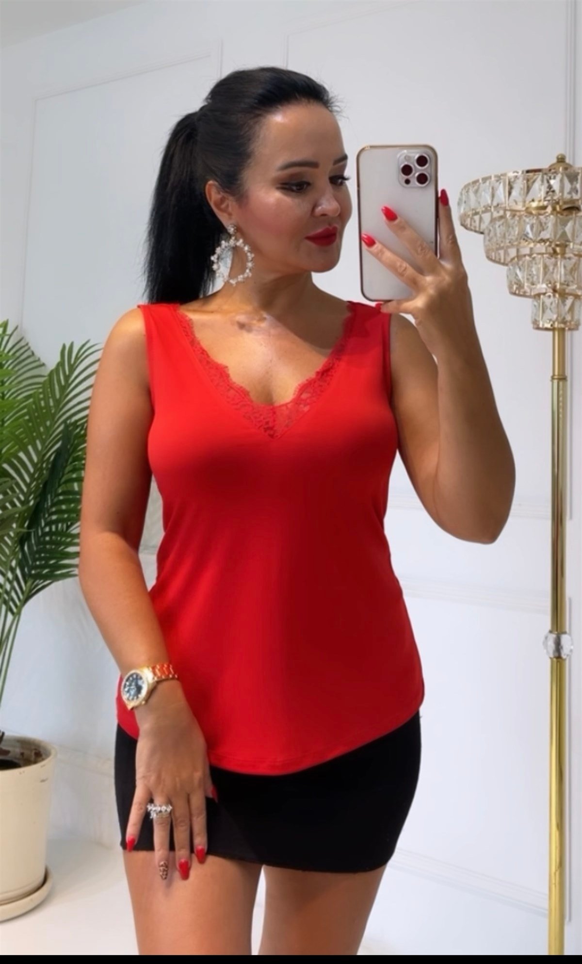 3694 Kırmızı V Yaka Candy Bluz (3694)