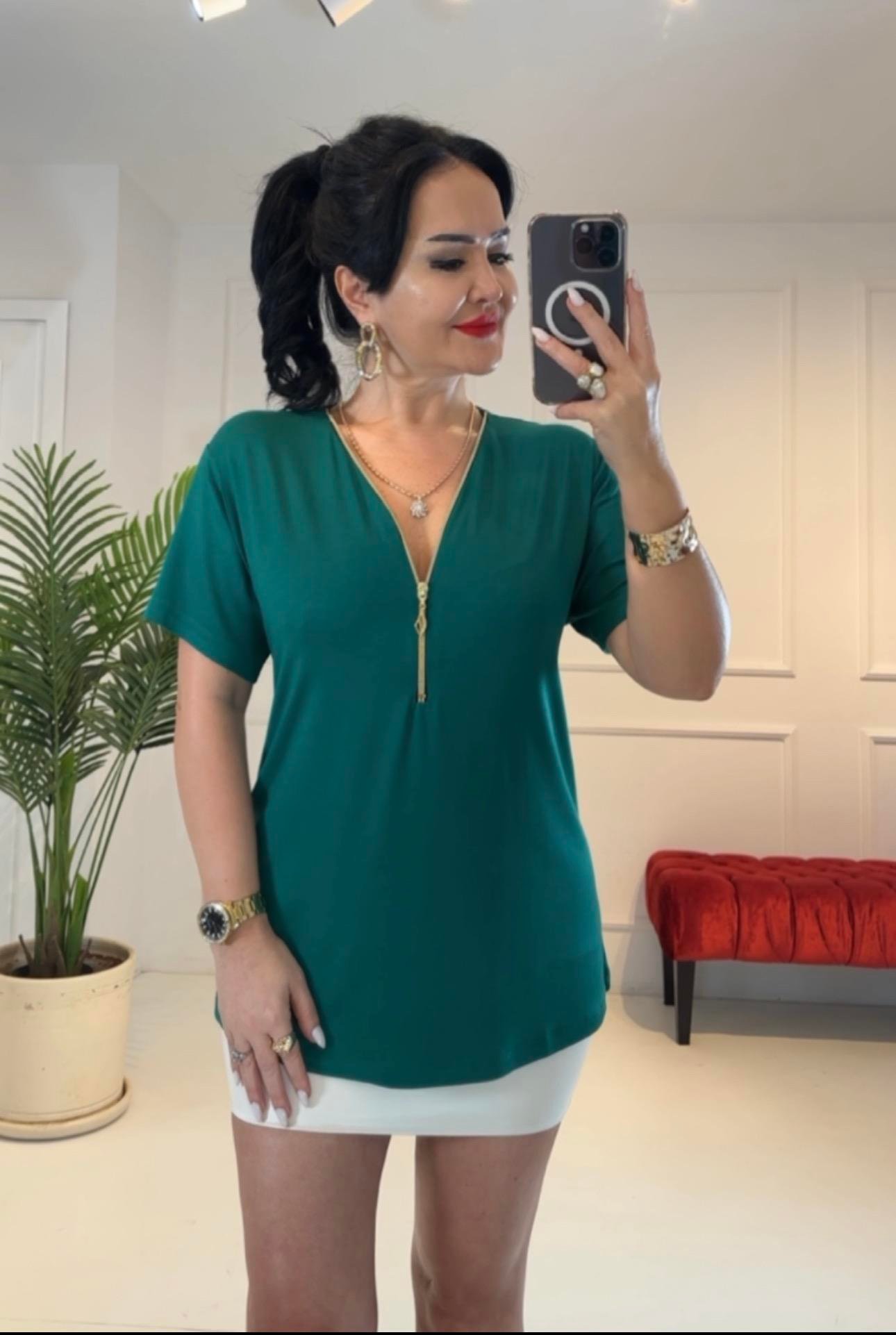 4095 Fermuarlı Yeşil Bluz (4095)