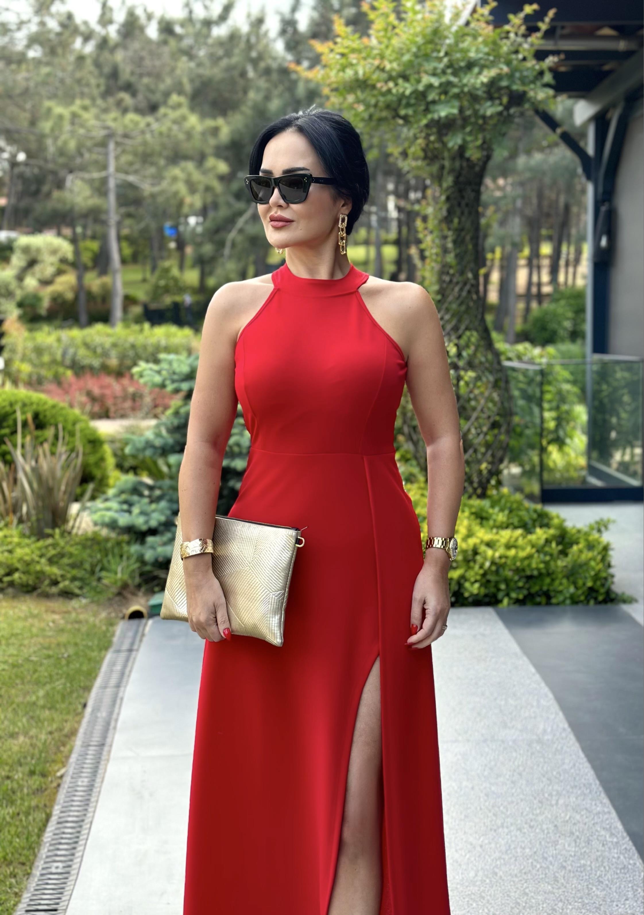 4500 Kırmızı Halter Yaka Elbise (4500)