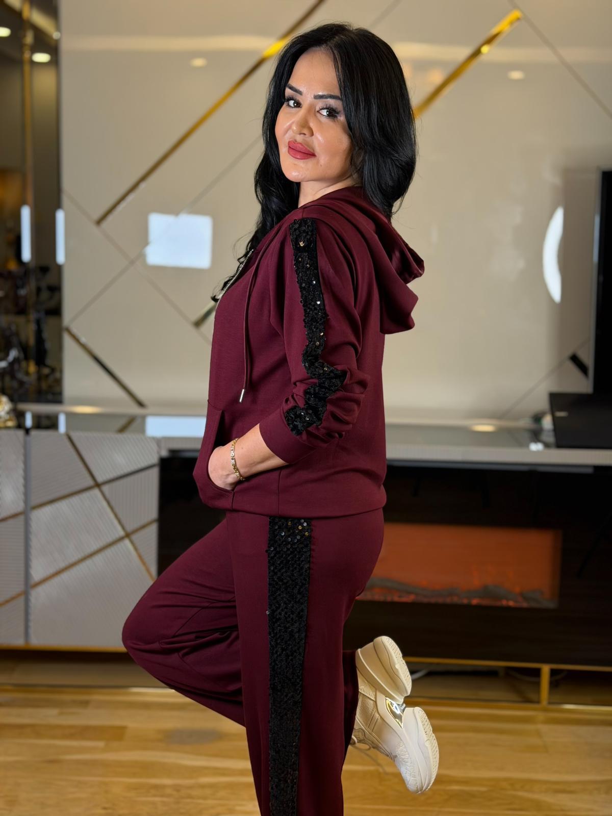 4856 Lara payetli palazzo paça bordo eşofman takım (4856)