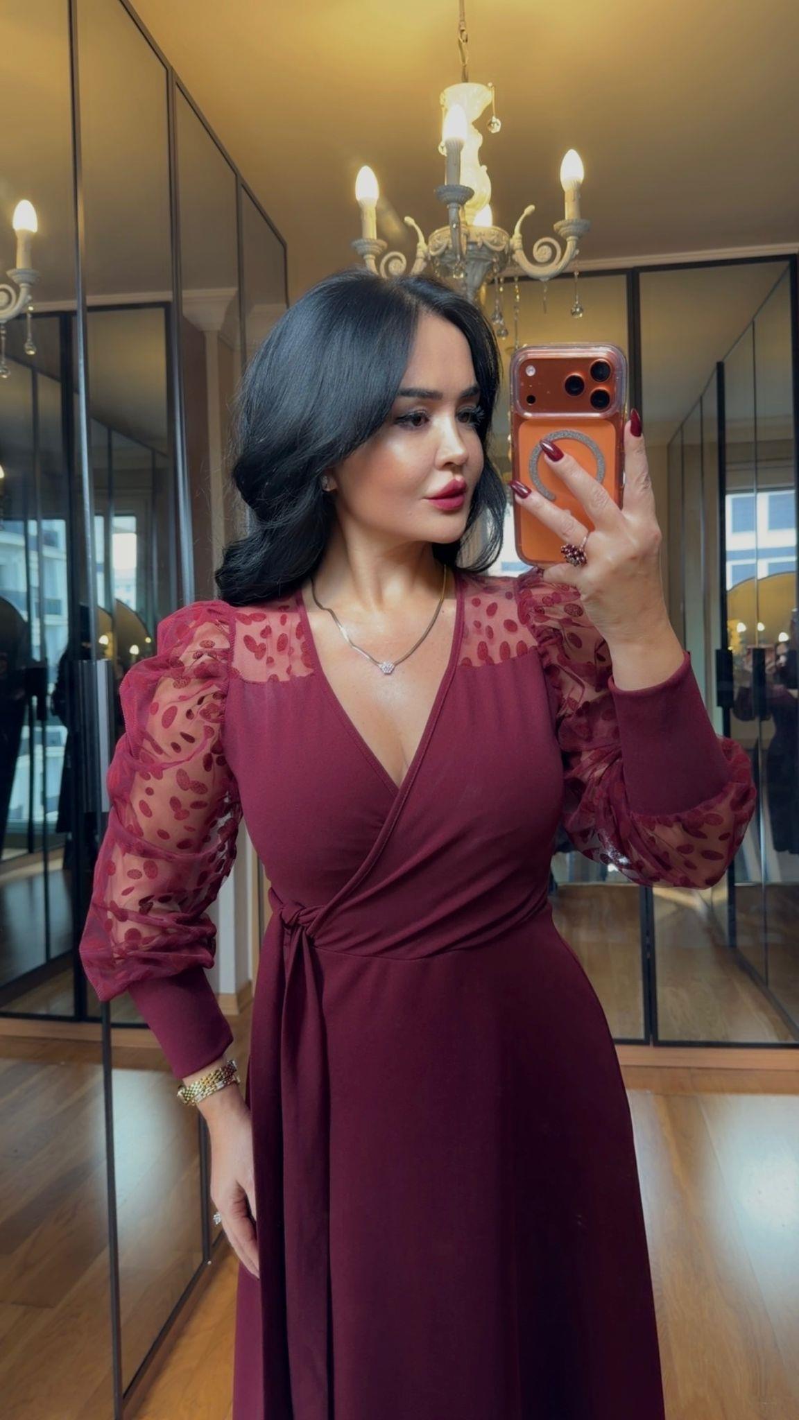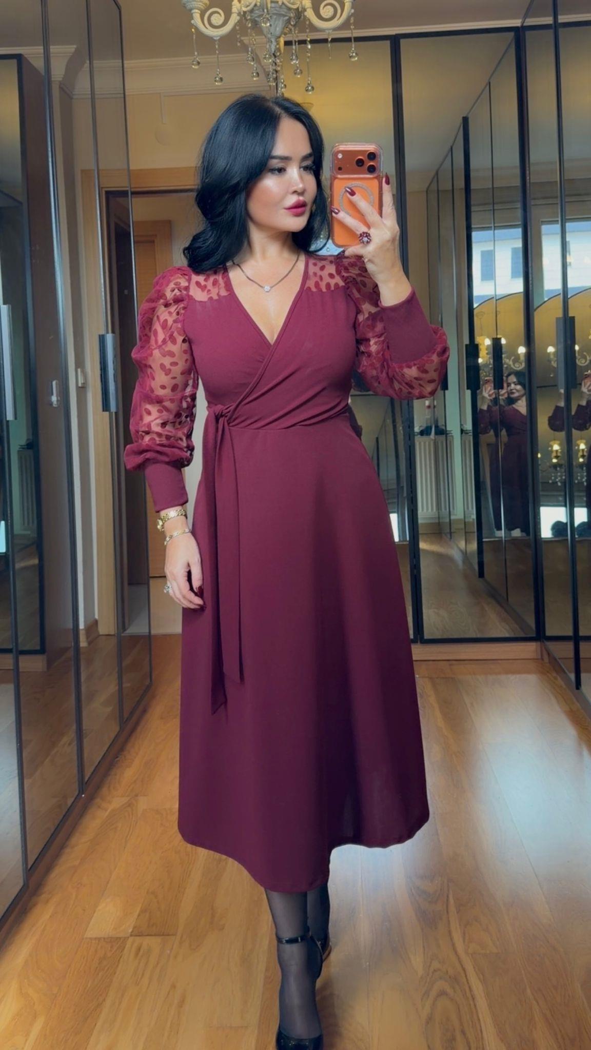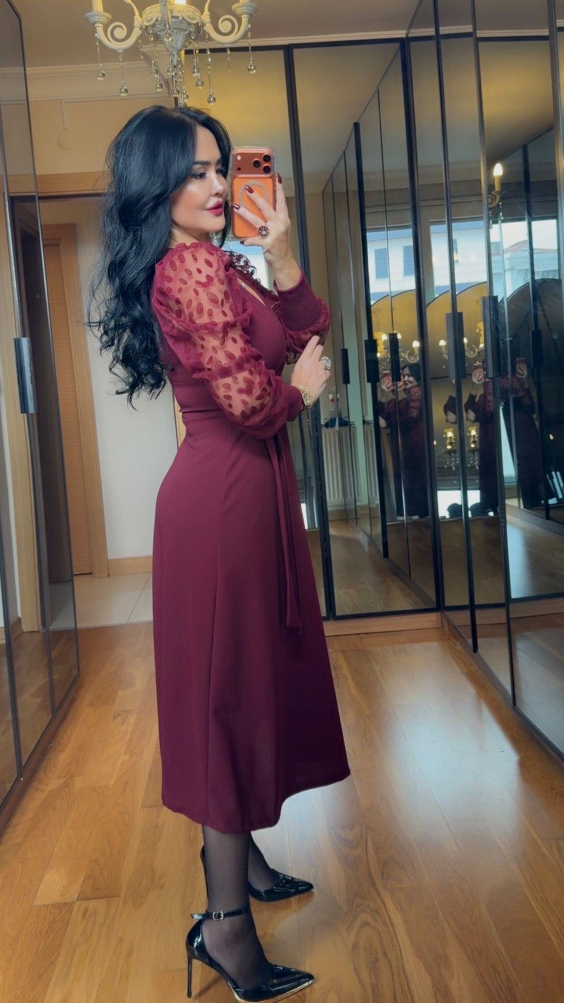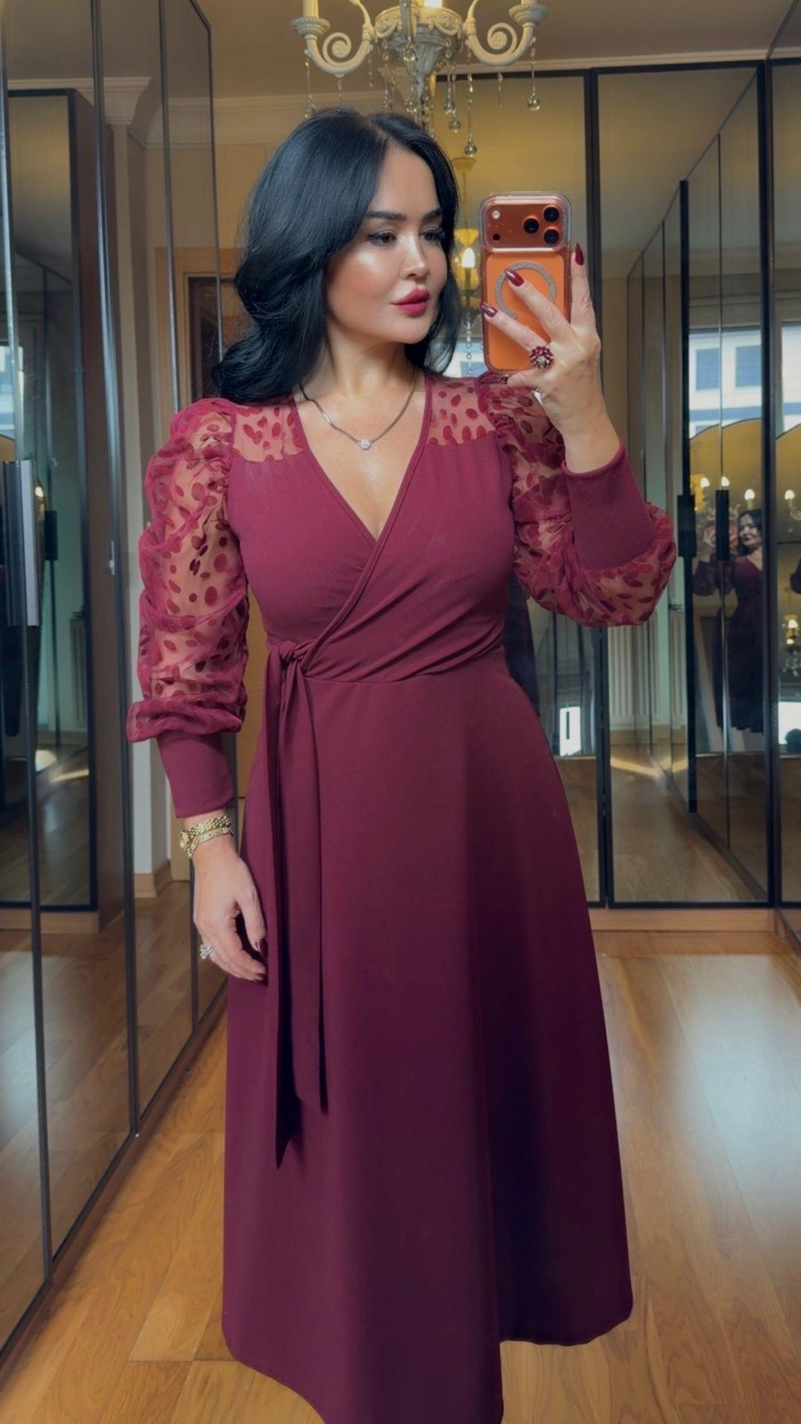 4902 Olivia Bordo Elbise (4902)