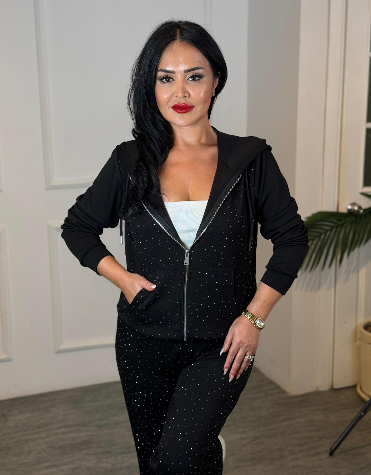 Yumuşak dokusu ve modern tasarımıyla gün boyu konfor sunan modal kumaştan üretilmiştir. Tam kalıp yapısı sayesinde vücudu ideal şekilde sarar, yüksek esnekliği ile hareket özgürlüğü sağlar. Üzerindeki taş detaylar, premium kalite DMS taş kullanılarak uygulanmış olup dökülme yapmaz ve uzun süre ilk günkü şıklığını korur.
