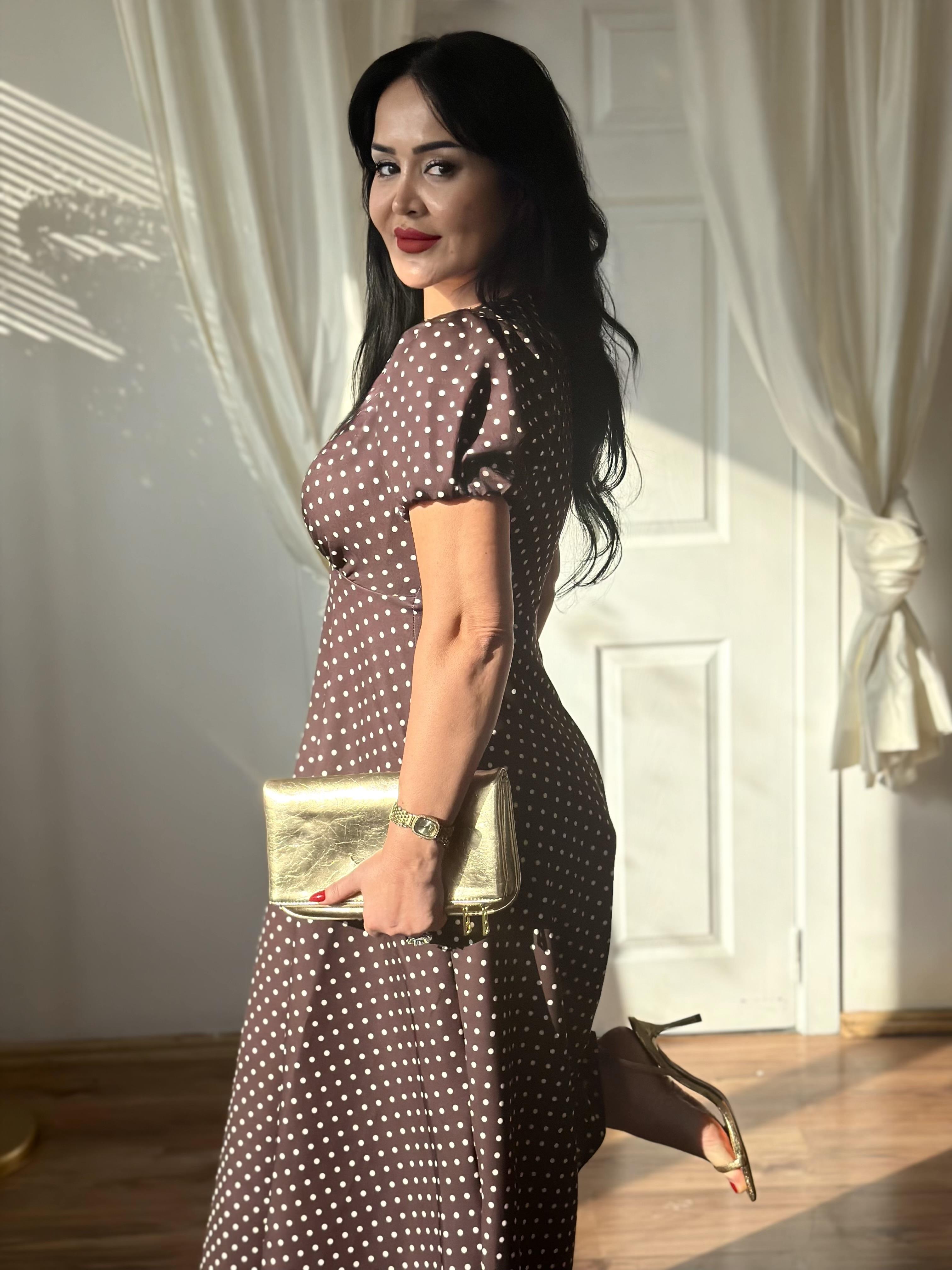 5002 Sakura kahverengi puantiyeli elbise (5002)