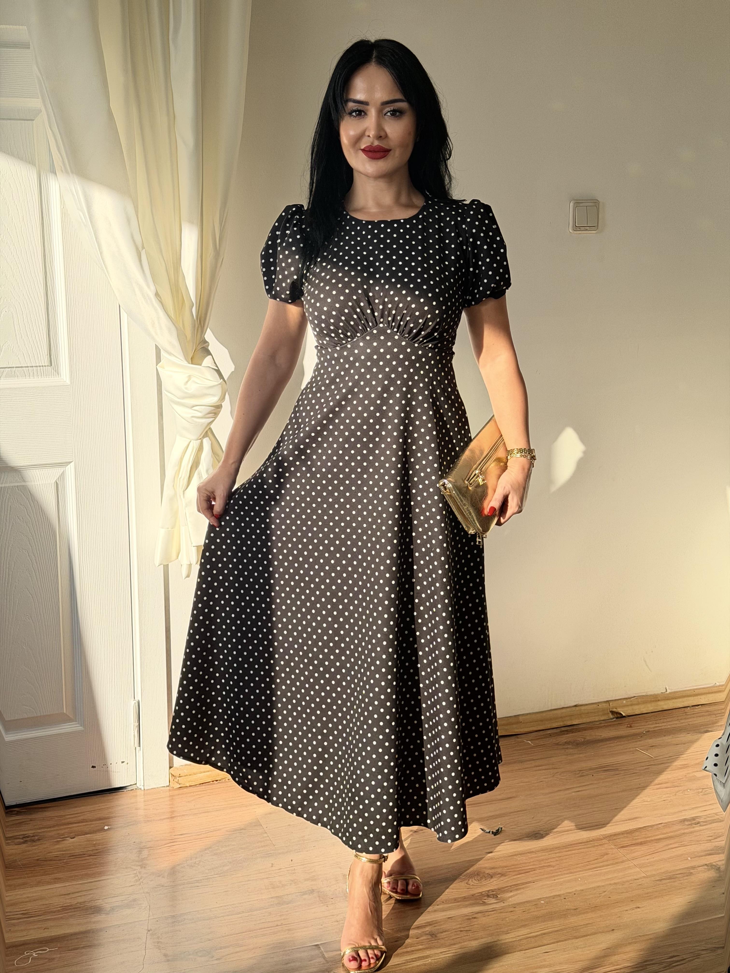 5002 Sakura kahverengi puantiyeli elbise 5002 Sakura beyaz puantiyeli elbise