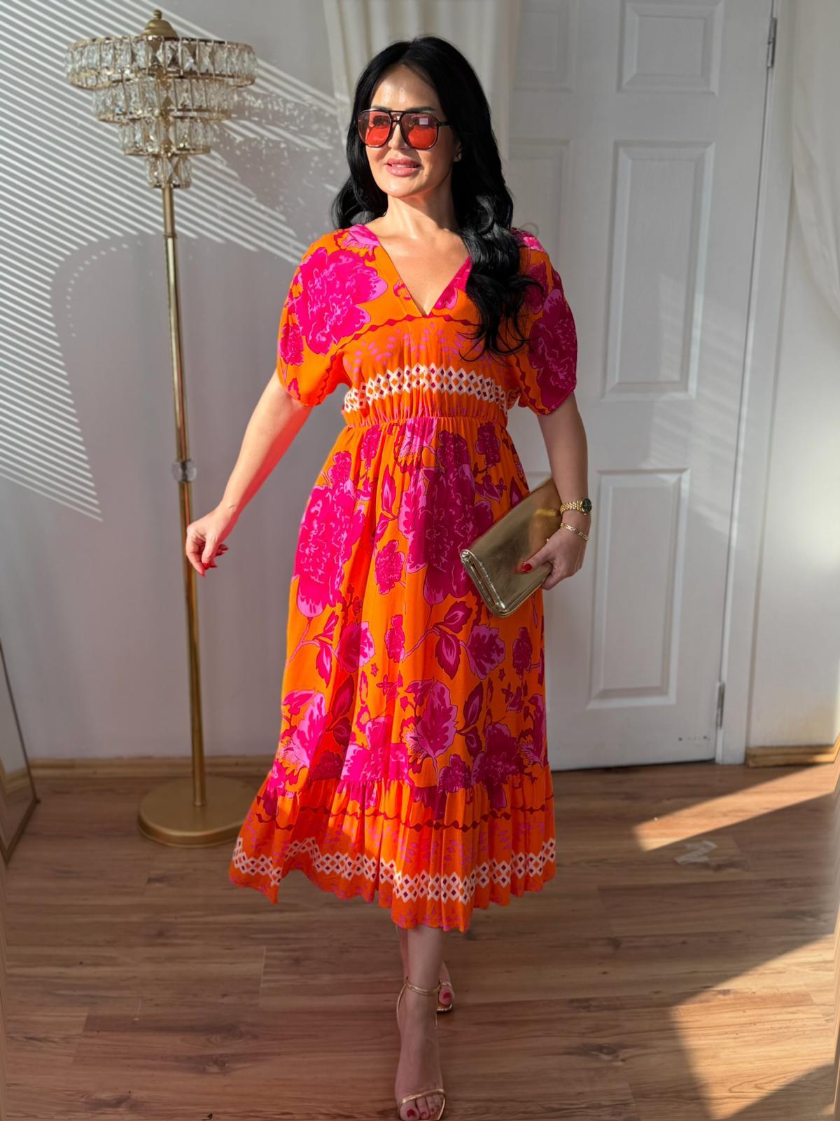 %100 dokuma pamuklu viskon kumaştan üretilen bu elbise, hafif ve nefes alan yapısıyla gün boyu ferahlık sağlar. Rahat kalıbı sayesinde vücuda yapışmadan özgür hareket imkânı sunar, konforu şıklıkla buluşturur. Omuz kısmındaki lastikli tasarım, hem modern hem de feminen bir görünüm kazandırırken farklı vücut tiplerine kolayca uyum sağlar. Yumuşak dokusu sayesinde cilt dostudur ve özellikle sıcak havalarda ideal bir kullanım sunar. Desenli yapısı ve dökümlü kesimiyle günlük kombinlerden tatil stiline kadar geniş bir kullanım alanı sunan bu elbise, gardırobunuzun vazgeçilmez parçalarından biri olacak.