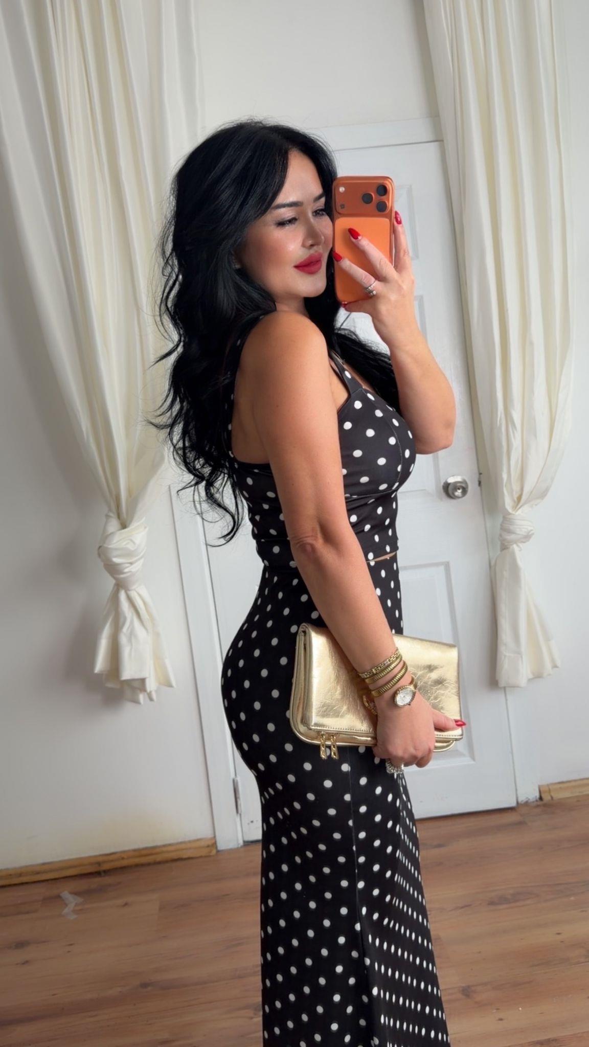 Zarif ve şık takımı, ithal double kumaş kullanılarak üretilmiştir. Modern puantiye desenleri ile estetik bir görünüm sunan bu ürün, beyaz, siyah ve kahverengi desenli seçenekleriyle her zevke hitap etmektedir.Günlük kullanımda maksimum konfor sağlamak üzere tasarlanmıştır. Yumuşak dokusu ve hafif yapısı, hareket özgürlüğü sunarak gün boyu rahatlık hissi verir.Şıklığı ve rahatlığı bir arada sunarak, hem günlük hem de özel davetlerde tercih edilebilir. İthal krep kumaşın sağladığı esneklik, kullanıcıya şık bir görünüm ve pratik bir kullanım deneyimi sunar. Puantiye deseni, modanın dinamiklerini yansıtarak her ortamda dikkat çekici bir stil oluşturur.